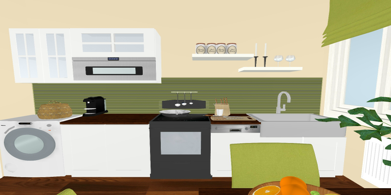 In den vorherigen Bildern seht ihr das Ambiente der Landhausküche. Die Farben die geplant wurden, sind auch so umgesetzt worden. Es fügt sich durch die weitere Holzdekorationen, den grünen Tönen, dem Naturboden und den Holzschränken einfach perfekt zusammen. Der Wunsch der Bauherrin ging voll auf und das wurde auch mit einem leckeren Essen zur Einweihung gelobt.
